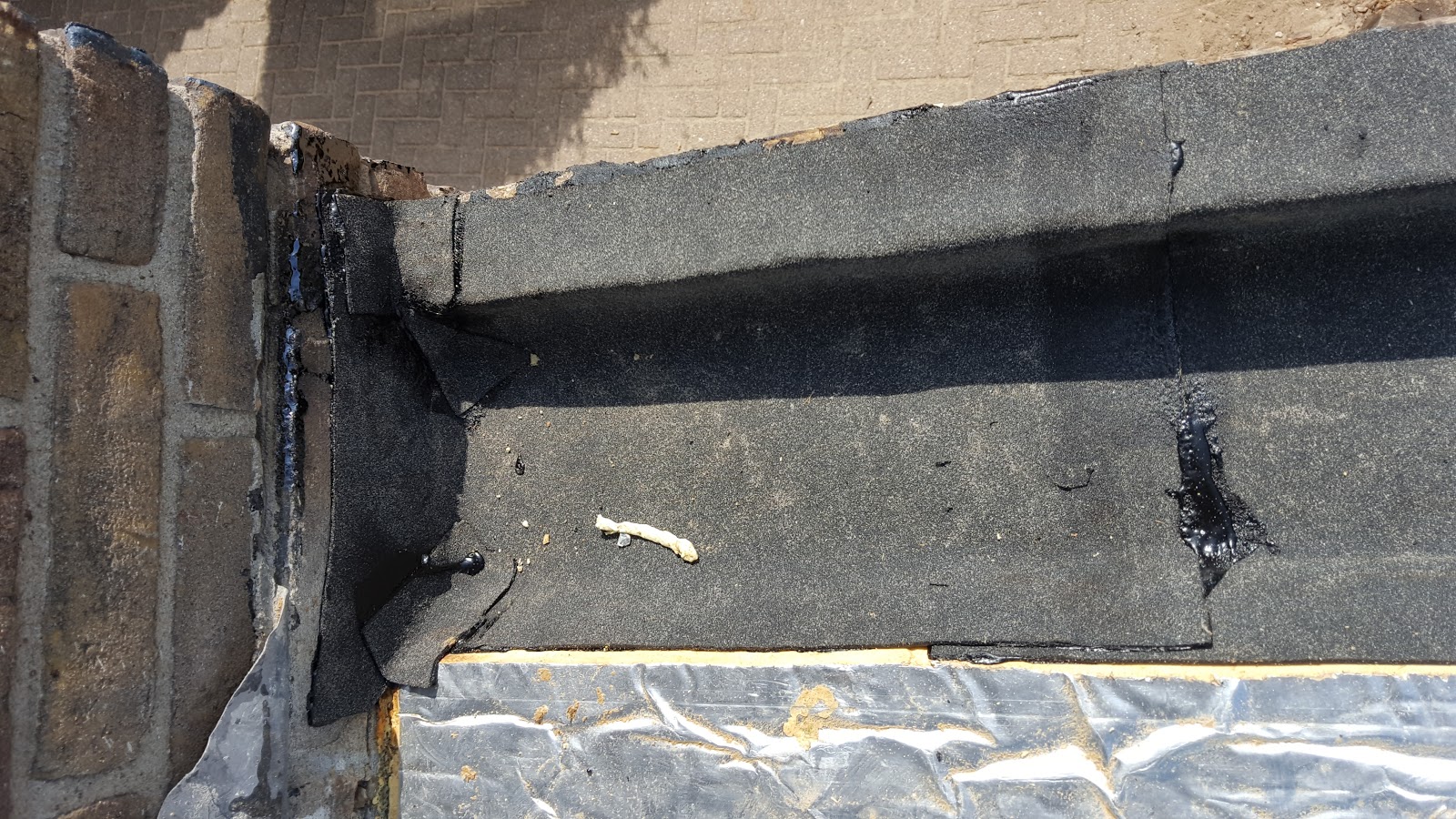 De goten vanmorgen afgemaakt, want overdag branden is geen optie in deze hitte. Dat zilverfolie op het isolatiemateriaal is echt alsof je in de woestijn op de evenaar staat, alsof je keel wordt dichtgeknepen zo heet.
