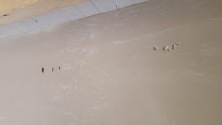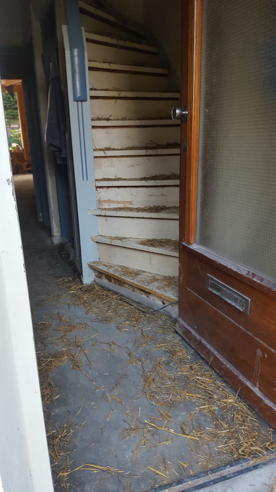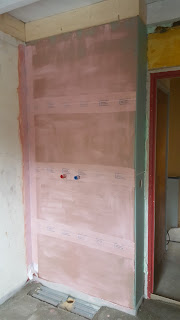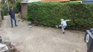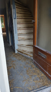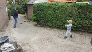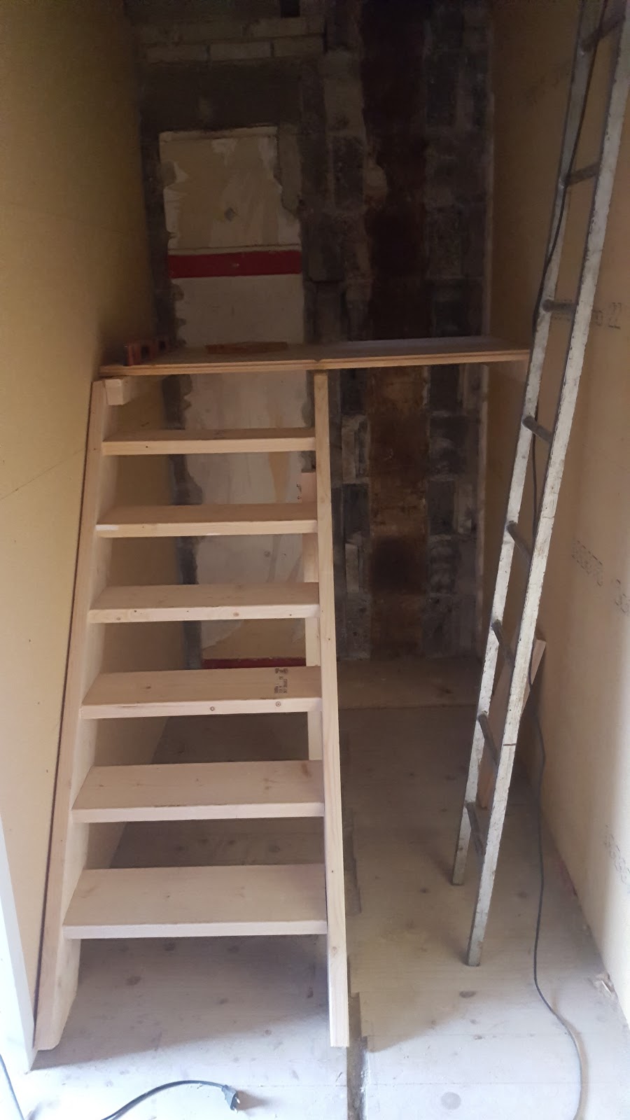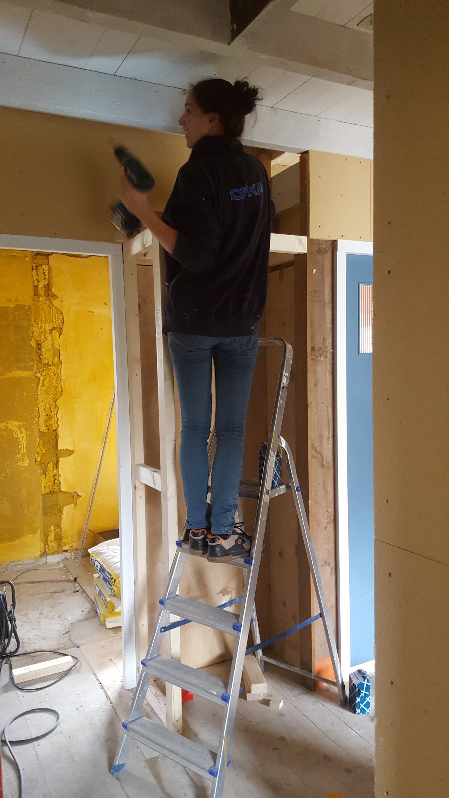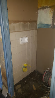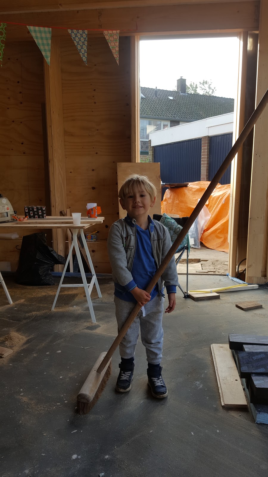 Sverre van school gehaald, broodje gegeten en middag dutje gedaan (samen, niets fijner dan dat!). Daarna gezien dat de wc betegeld is, het vinyl (ja echt waar, vloerbedekking op de muur) van de muur af is. Er een eerste deel van de trap naar zolder staat en het begin van de badkamervloer er ligt.