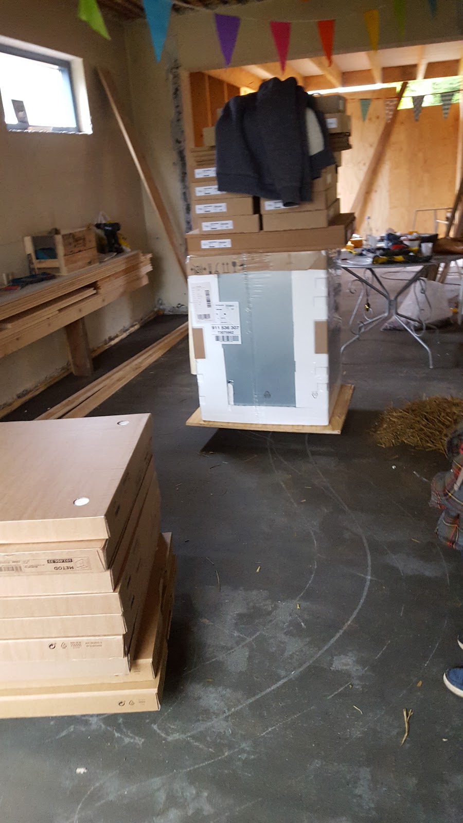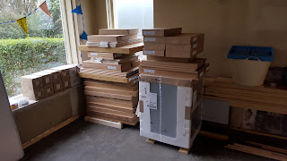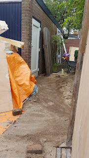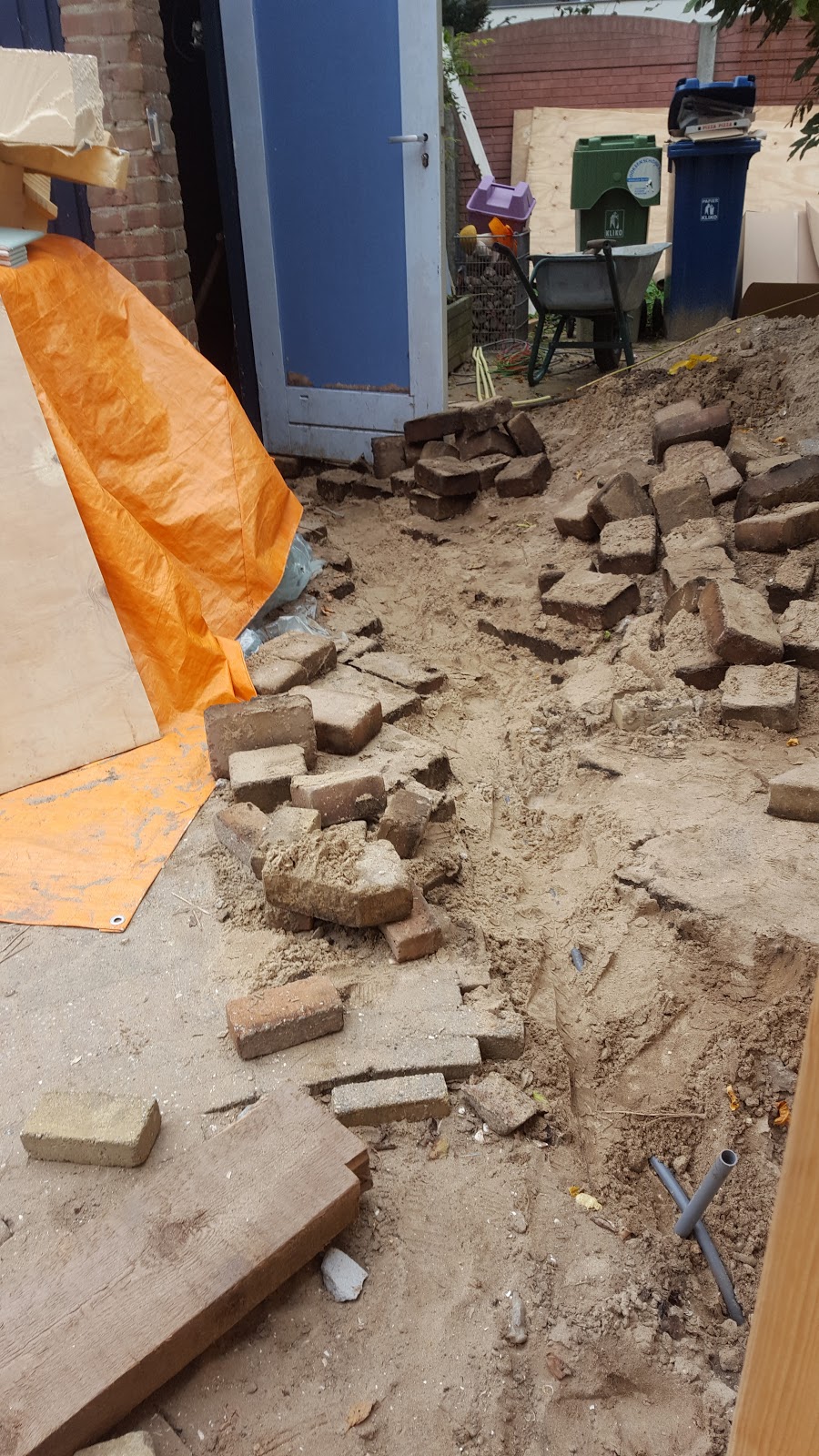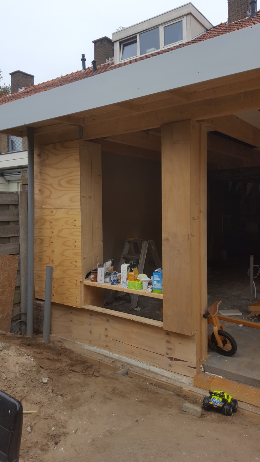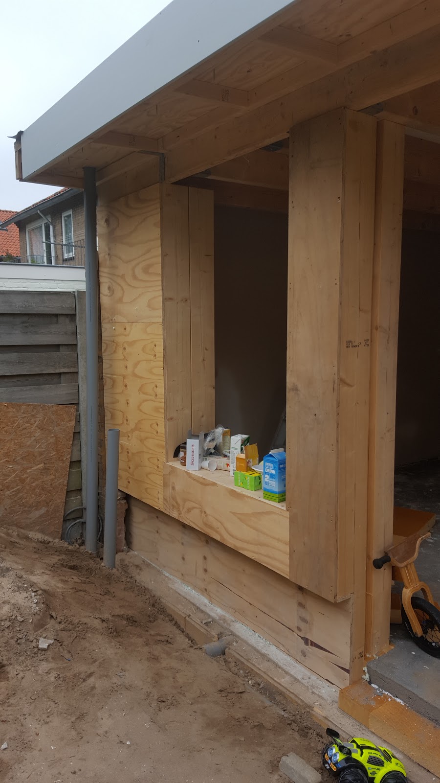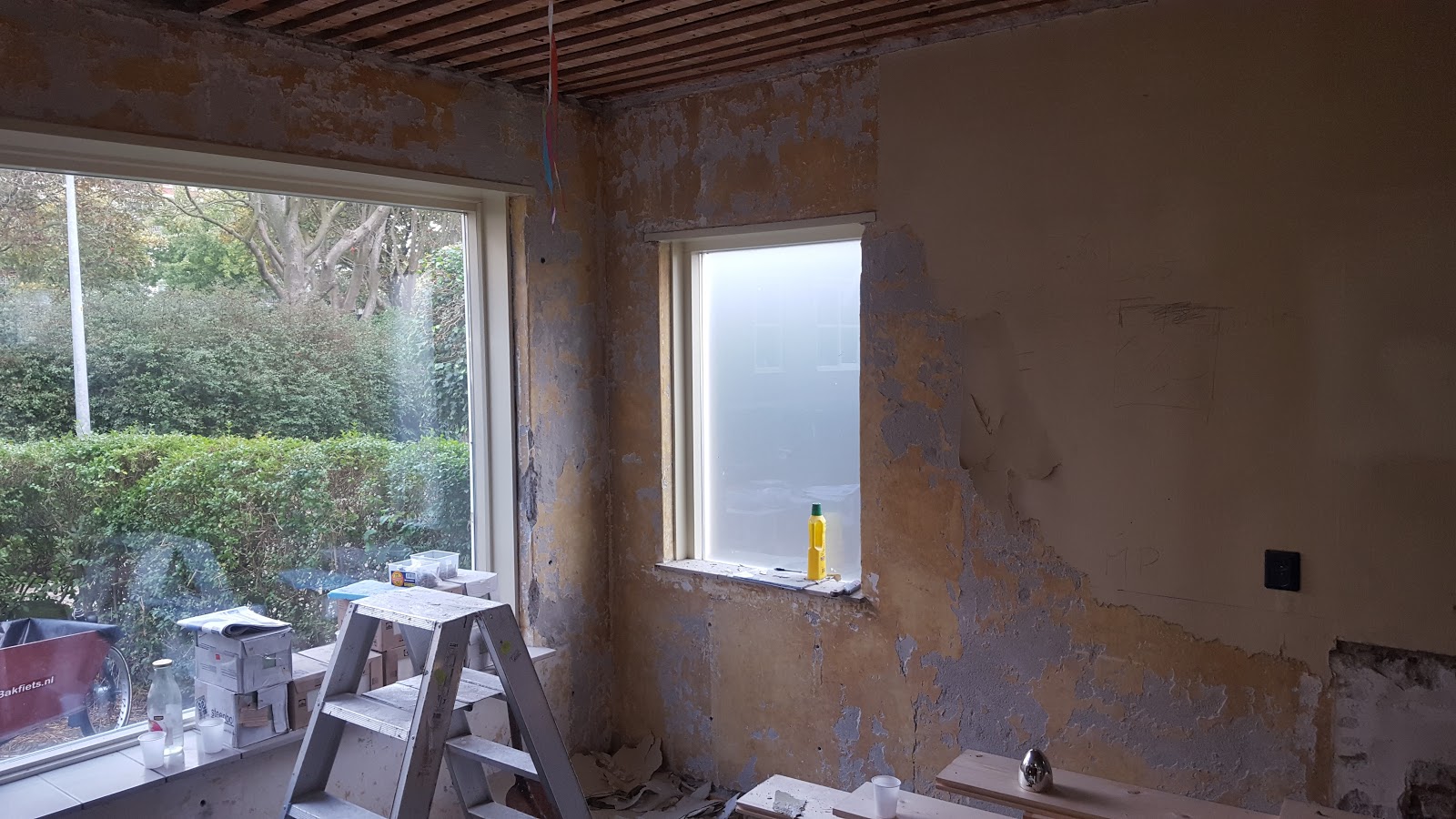 Oh nee, die dacht ik rij gewoon dat straatje in… Een deel van de keuken is dus binnen, dat wordt ‘relatietherapie’ om het in elkaar te krijgen.