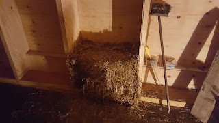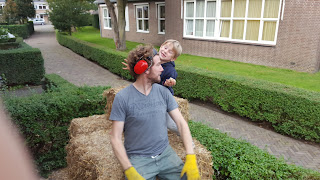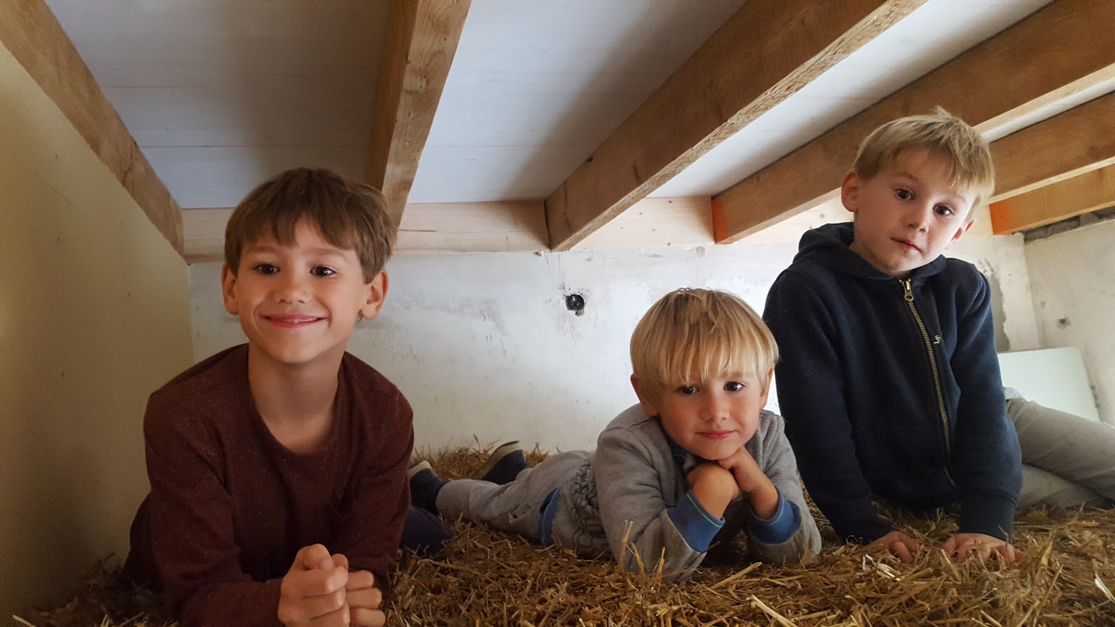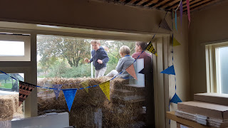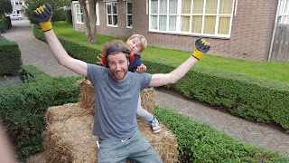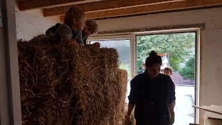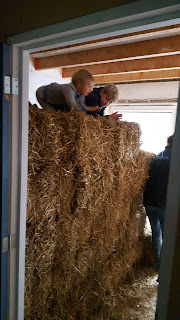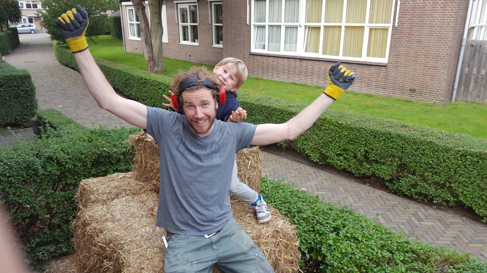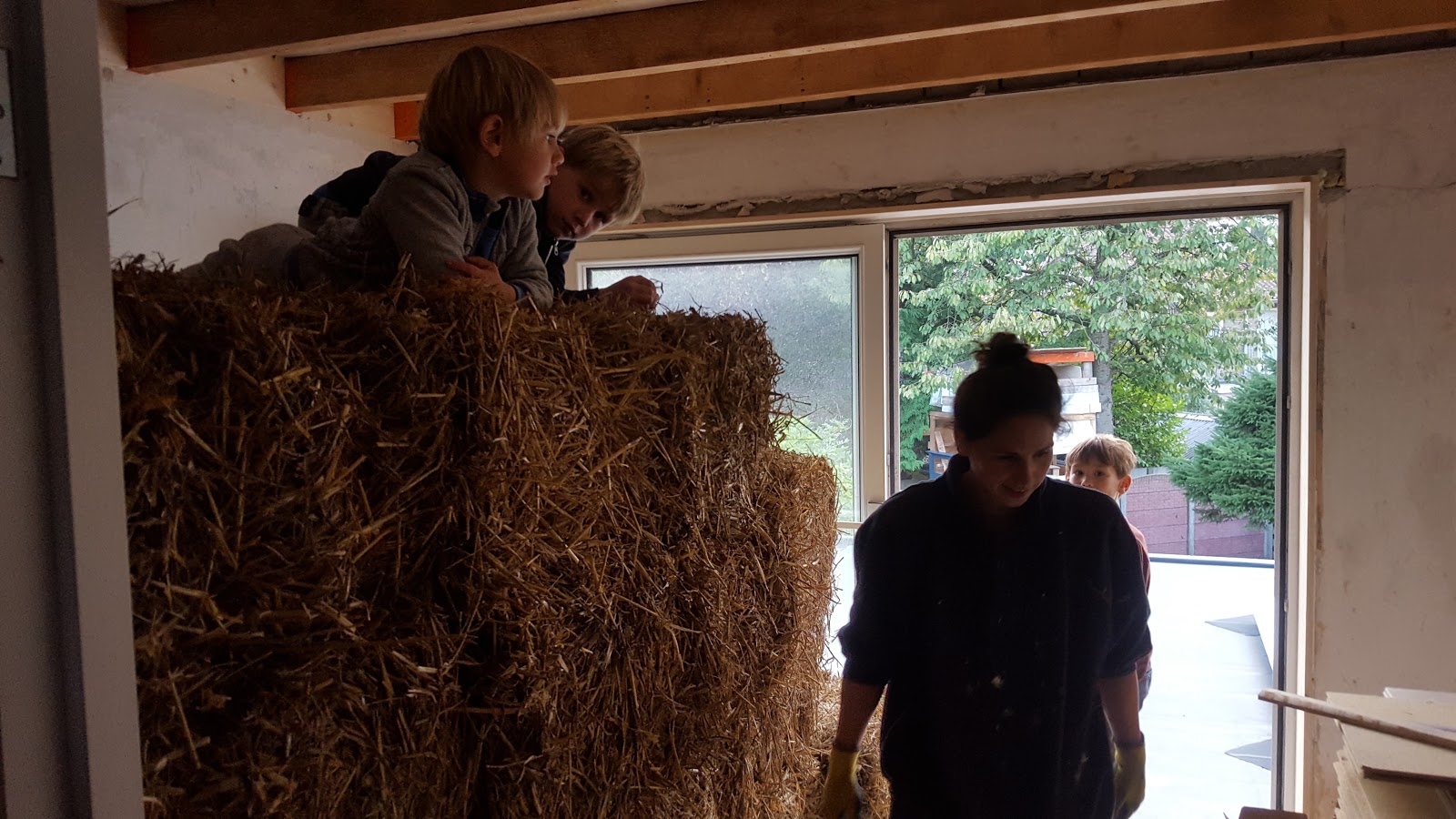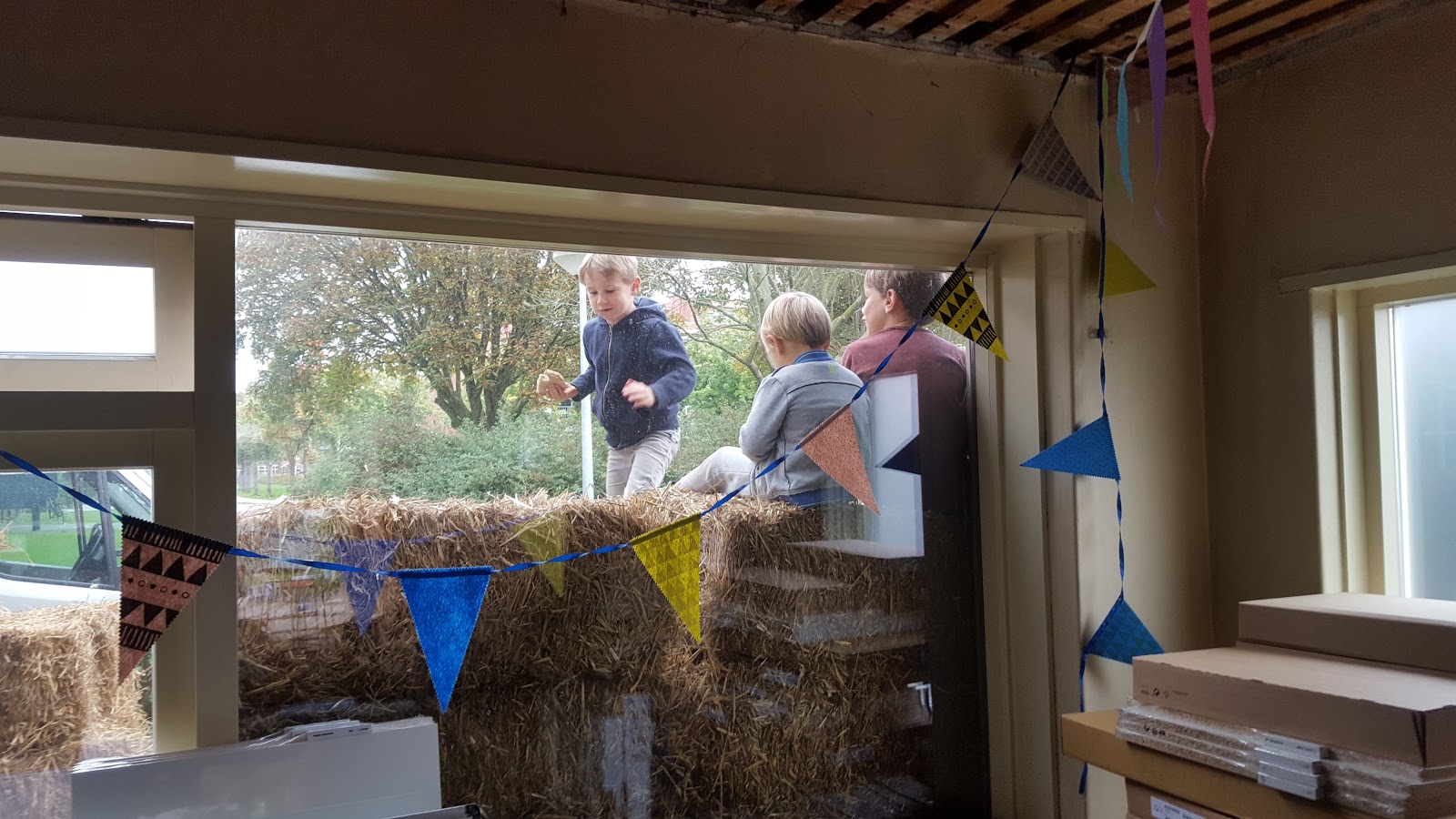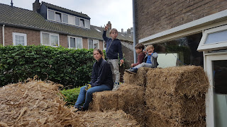 En dan ook nog even 42 balen stro afladen. Feest voor de kinderen.