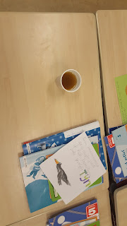 Vanavond na een race tegen de klok naar Tijn zijn klas voor de informatieavond met een lieve brief van hem op zijn tafel.