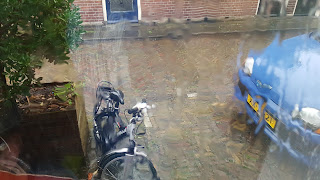 Daarna mega heftige regenval in zeer korte tijd waar de mannen lekker met hun laarzen doorheen stampen.