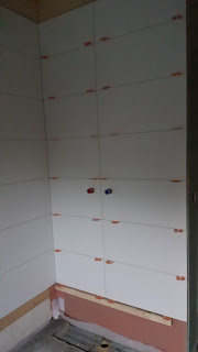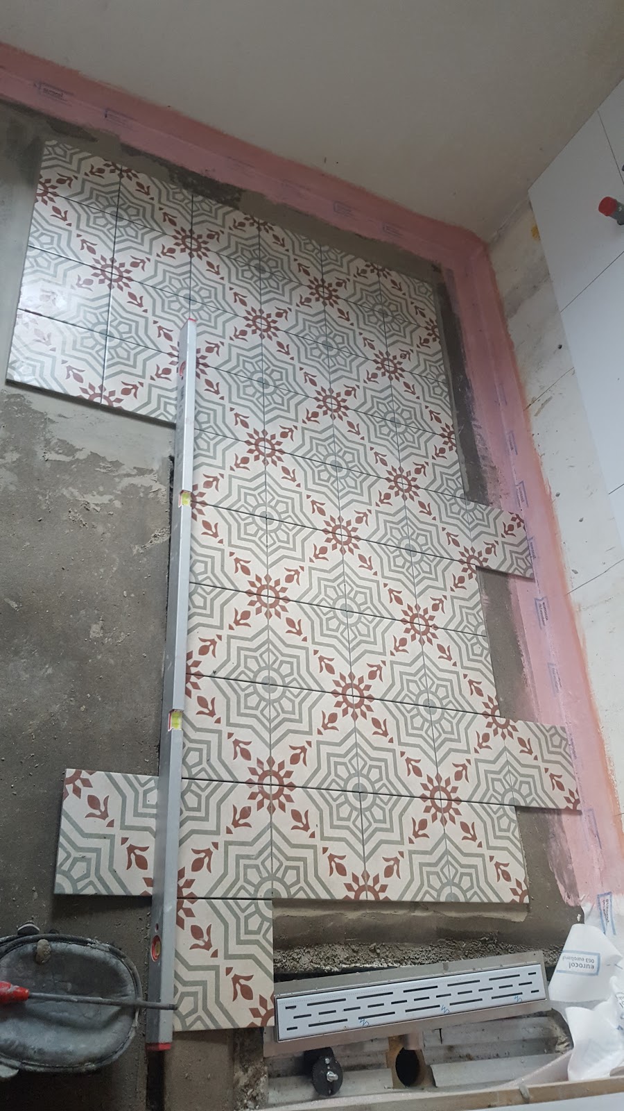 Stefan gaat als een speer en de eerste tegels zitten op de badkamer wanden.