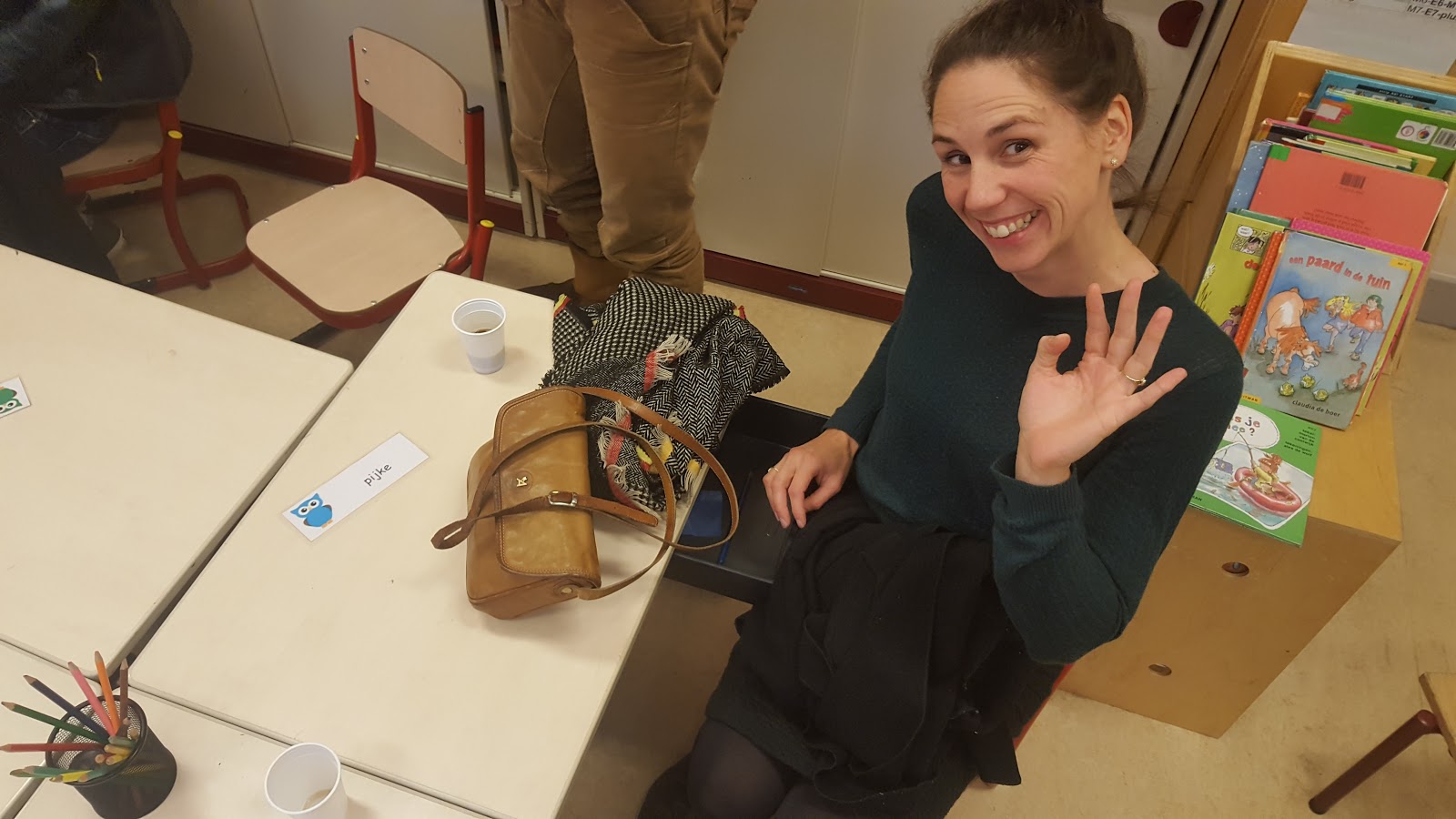 Informatie avond in de klas van Pijke waar we mochten proberen of we op de kabouter stoeltjes passen 😉 Enorm leuk, maar wel lastig om leerkrachten te blijven volgen met aandacht want ze gebruiken zoveel woorden …